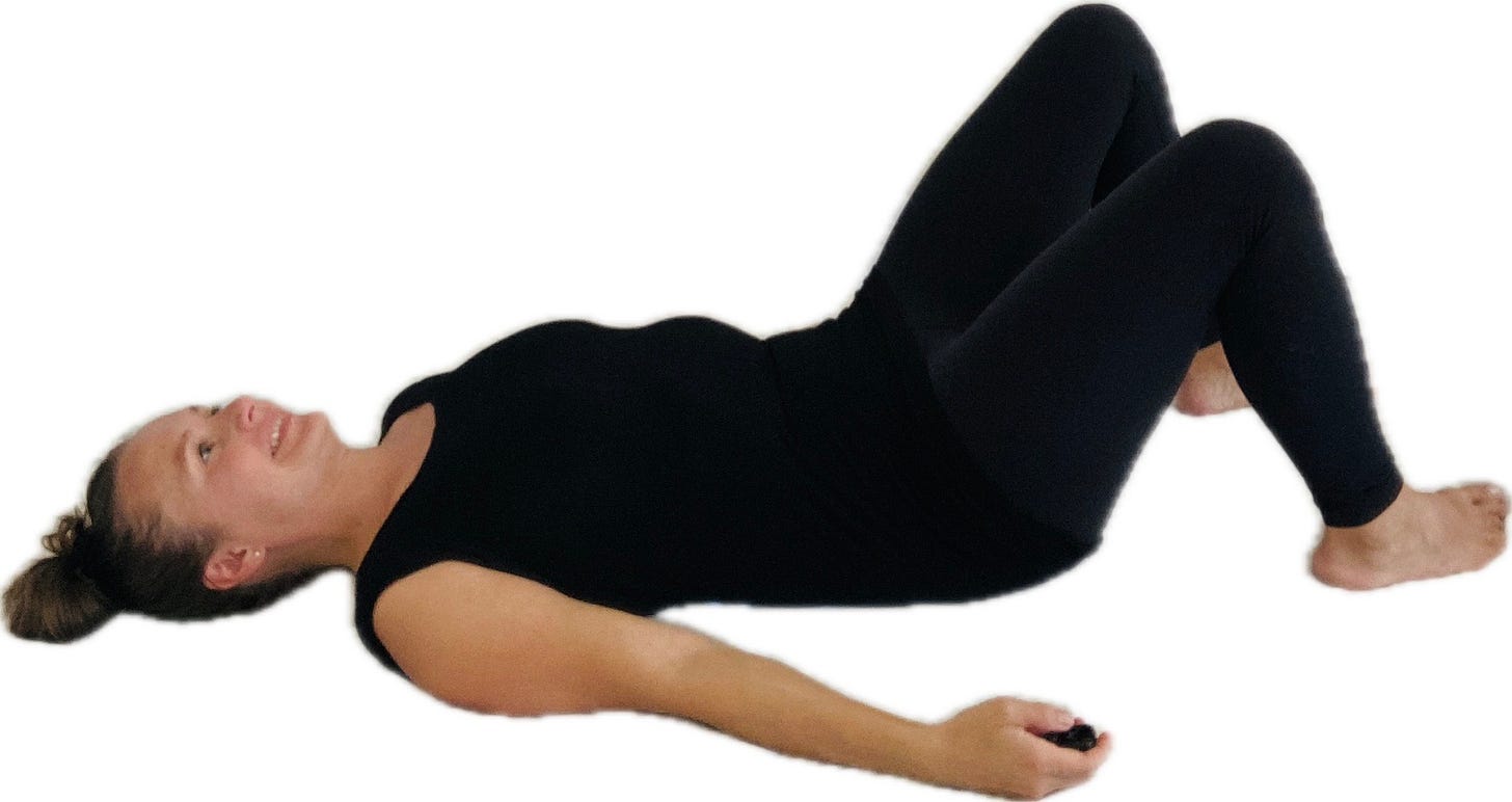 • Inhale, then exhale as you gently tilt your pelvis, engaging your pelvic floor. Hold and release. Repeat 10-15 times.